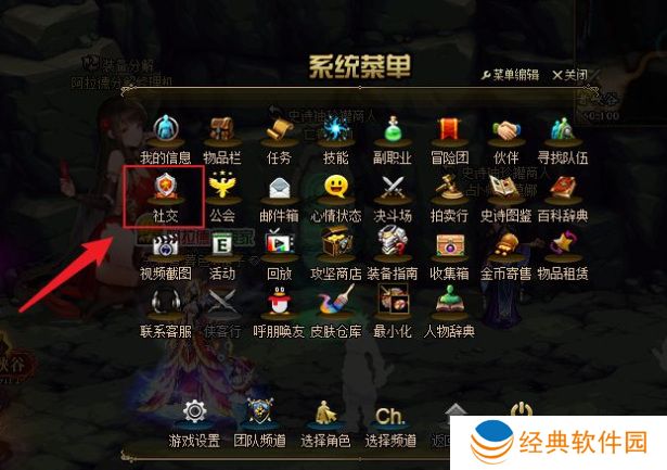 1、在游戏里,按键盘上的【ESC】,打开系统菜单,点击【社交】。