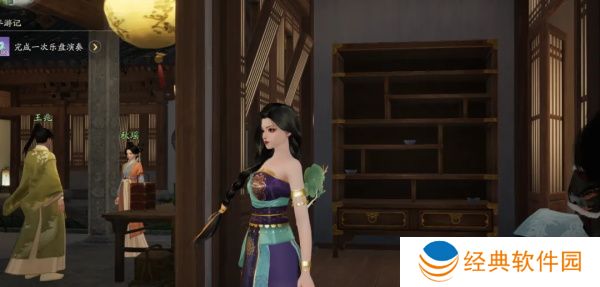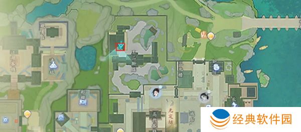 1.射雕王二脚店密室具体位置在下图两个npc旁边的走廊里。