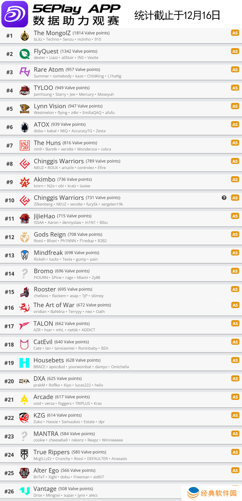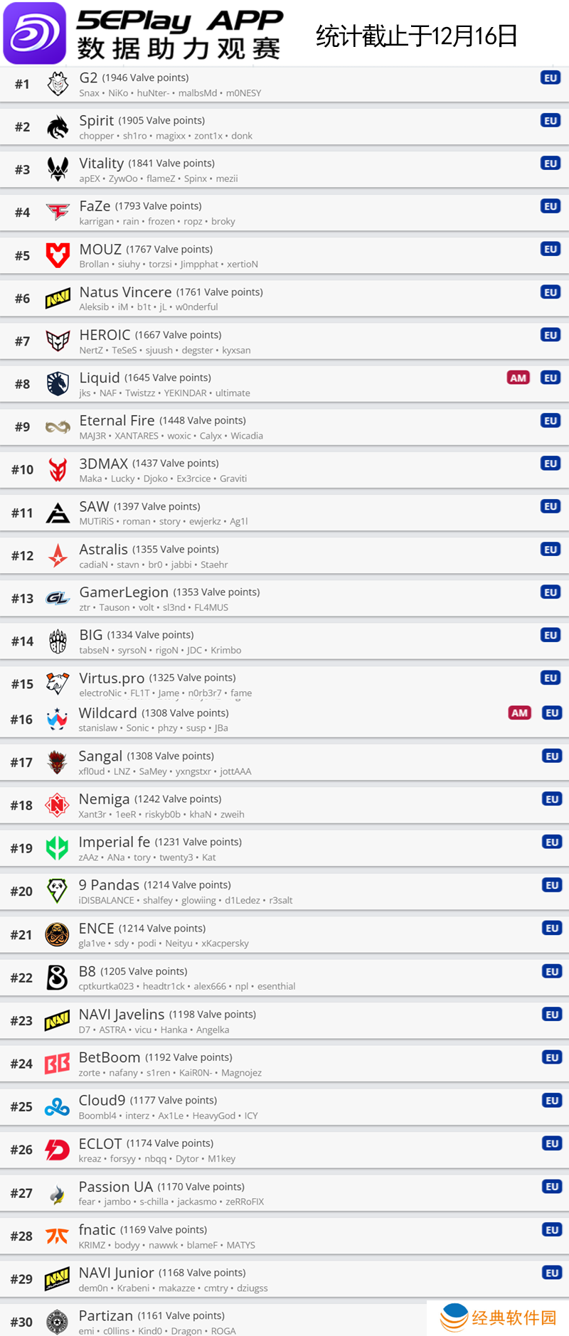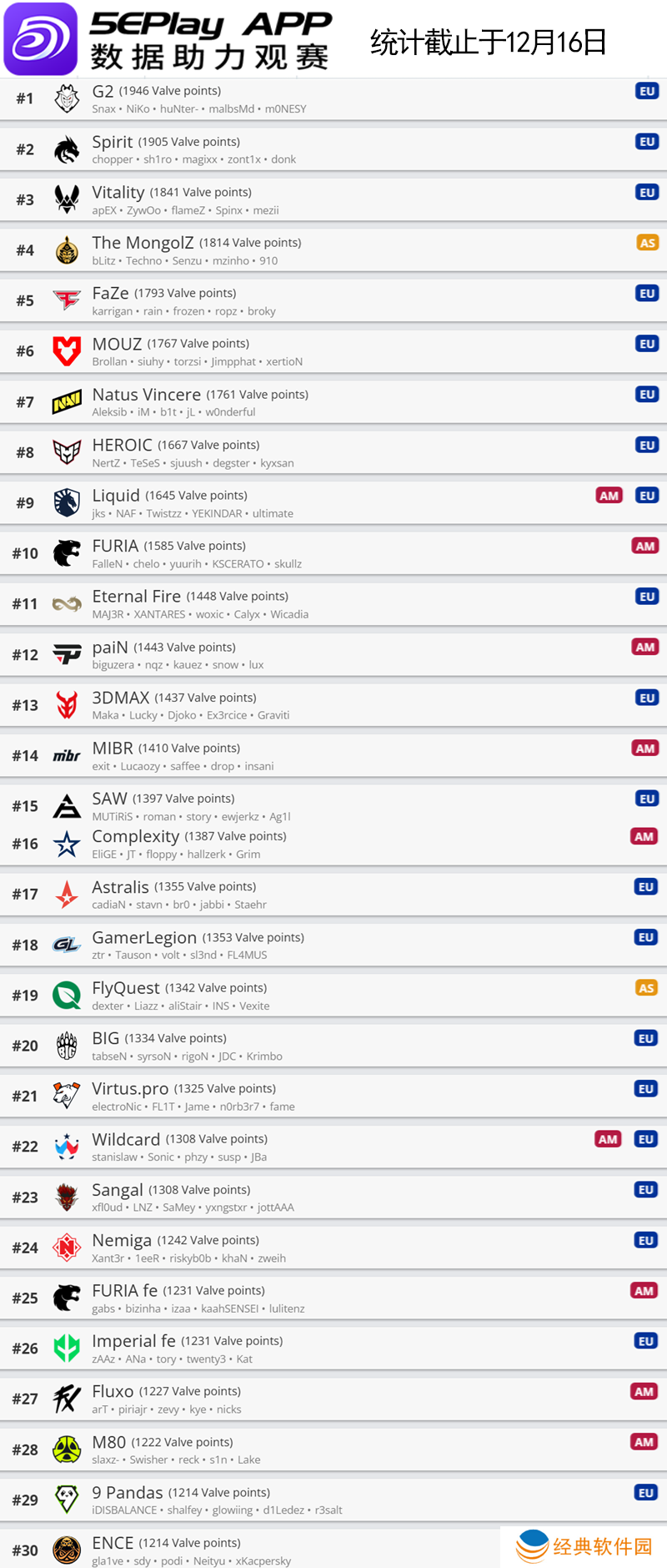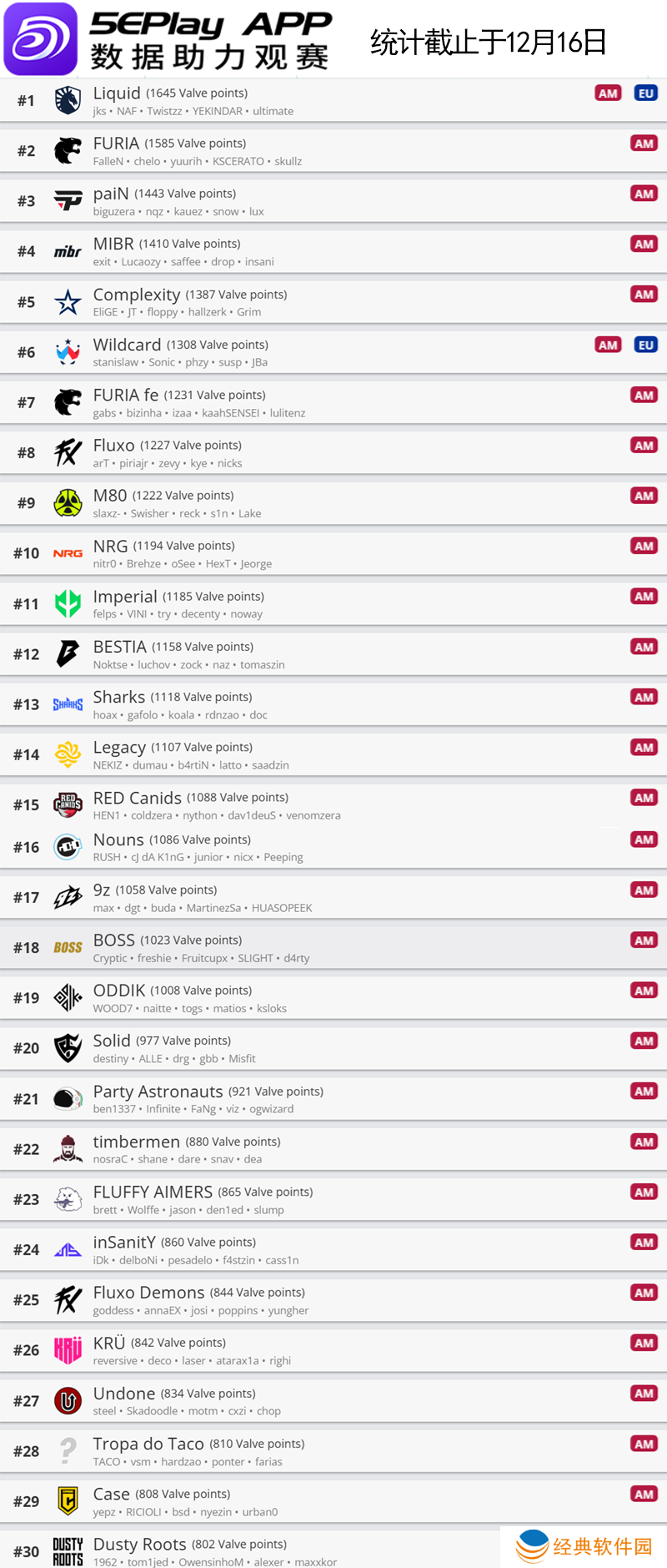 今天V社更新了旗下CS世界排名,这一世界排名会和明年的赛事邀请紧密联系,因此是主办方和战队都必须关注的内容。