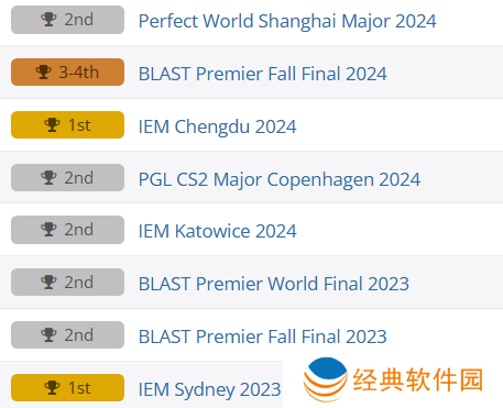从CS新版本正式发布以来,FaZe一共在游戏中七次打进大赛决赛。但他们只有两次捧起冠军奖杯,分别是2023年IEM 悉尼站和2024 IEM 成都站,剩余的大赛决赛都先后折戟。