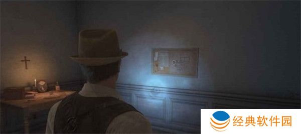 离开地下室后,进入开着门的房间从公告板上拾取广场钥匙。