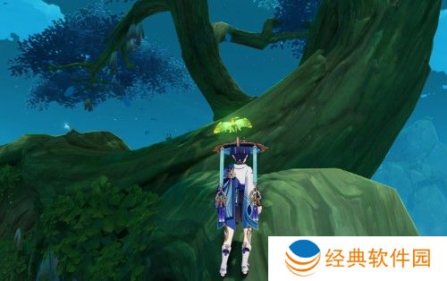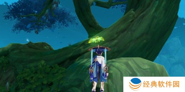 2、抵达以后往北边跳,会发现一个石桌,石桌旁边的古树上面可以找到蝴蝶;