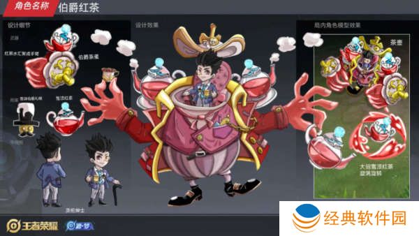 首先我们先来看一下刘禅的伯爵红茶这款皮肤,刘禅的伯爵红茶这款皮肤属于电玩系列的皮肤,这款皮肤主色调是以红色为主,刘禅这位英雄的形象也是非常卡通的,刘禅坐在茶壶里面,手中拿着红茶,非常的好看。