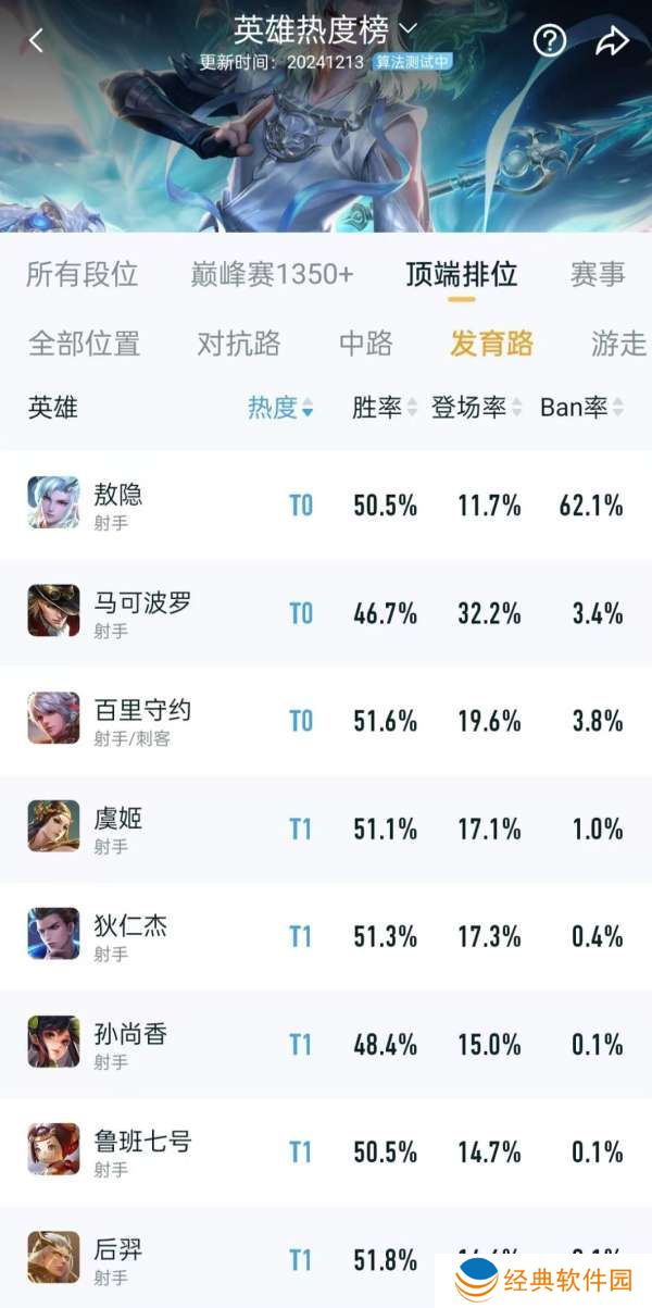 最后一个就是狄仁杰了,其实狄仁杰一直都是万金油的存在。强度也是居高不下,从来没有让大家失望。狄仁杰属于那种操作不复杂,又很实用的英雄,更是发育路必须会玩的英雄,即使官方调整,也不会太差,这一点不需要担心。所以可以一直玩狄仁杰,还可以达到很不错的效果。