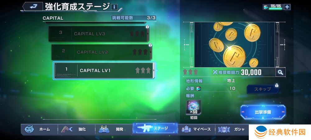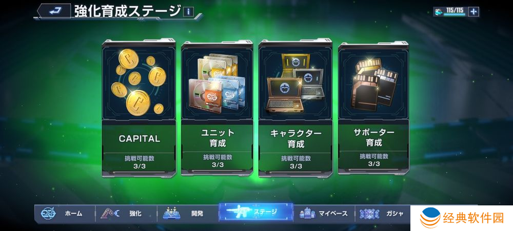 可在此关卡获得大量 CAPITAL 以及各种强化材料。每种材料均设有每天可游玩次数限制。