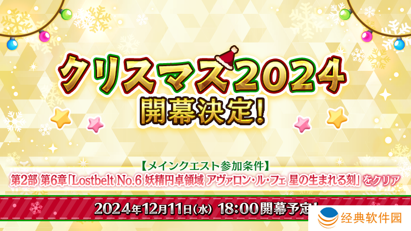 FGO PROJECT(Notes、Aniplex,Lasengle)旗下智慧型手机 RPG《Fate/Grand Order》日版,官方在2024年12月4日预告自 12 月 11 日举办期间限定活动「圣诞节 2024」。