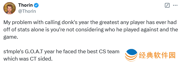 “仅凭数据就把donk刚出道的这一年称为史上最伟大的一年,我的矛盾点在于你没有考虑到他面对的对手和比赛难度。
