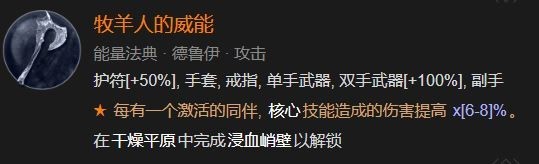 暗黑破坏神4德鲁伊威能挑选牧羊人的威能、震荡波威能、群奔之威能,这三个威能组合能让你的关键技能伤害翻4倍,也有恐怖熊人之威能也是非常重要的,组合治愈石之威能、流砂之威能和月蚀之威能技能大地堡垒大幅提高。