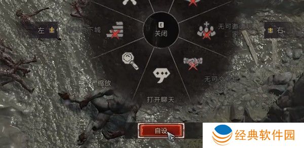 2、在这个建筑上大家按默认E键开启动作轮盘点击轮盘下方自设。