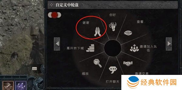 3、之后在自设中寻找感谢的动作,把这个动作装备到轮盘随意部位。