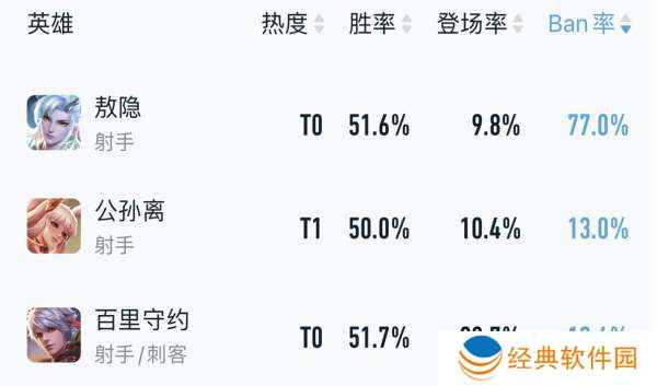 T0梯队:敖隐、百里守约、公孙离
