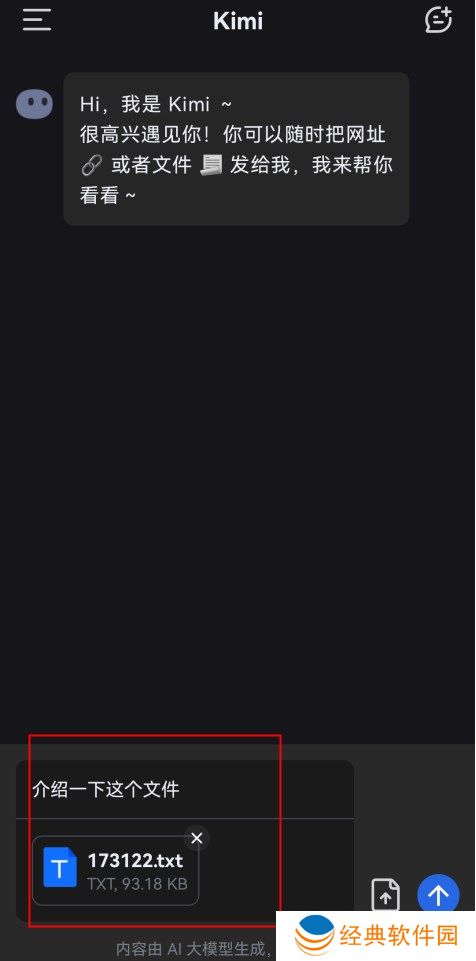 1、打开kimi,点击聊天框右侧的文件上传按钮就可以选择文件了。