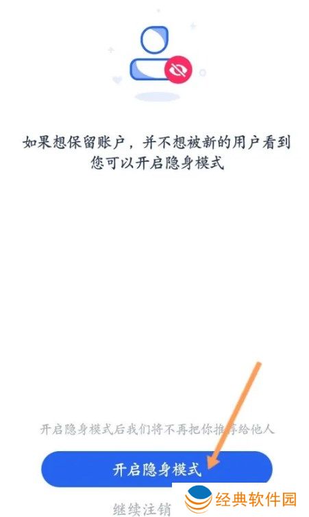 5、在注销账户页面,如果不是想要注销账户的话就点击【开始隐身模式】,这样就可以隐藏在线了。