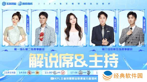 解说席&主持人:解说小鹿 (陆舒媛)、解说老王ww (王华斌)、解说李九 (李昂)、解说天云 (高天云)、解说潇洒洒 (李潮)