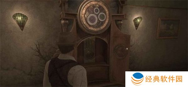 前往画廊,在钟表右侧的门上使用起居室钥匙。