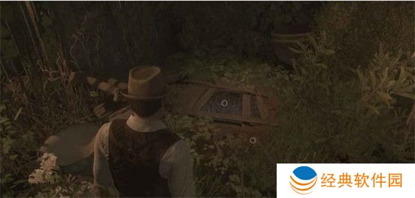 走到雕像后的井边,把水管接在花园的管子上,使水井中的水位上升,拾取桶里的碎盘子。