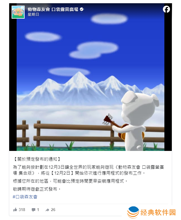 任天堂宣布,为了能够按计划在 12 月 3 日让全世界的玩家能够游玩《动物森友会 口袋露营广场 集合版》,从12月2日开始依次进行应用程式的发布工作。根据玩家所在的地区,可能会比预定时间更早安装应用程式。