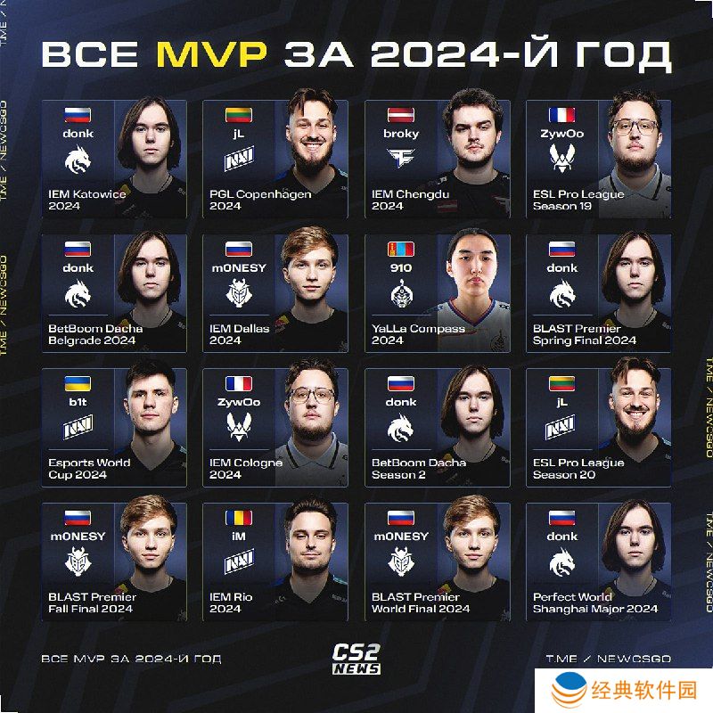 随着今年最后一场比赛上海Major落下帷幕,2024赛季正式收官。下面就让我们一起来回顾一下,今年所有大型赛事中的MVP获得者吧: