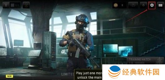 1、首先开启使命召唤战区手游游戏进入到主页面,点击右上角【设置】图标;