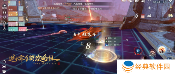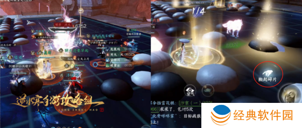 5.第三轮对弈:小红圈攻击需要保持位移躲避,撑不住时可以开解控减伤或带云中梦隐特质,碧云问笛群侠等;地图随机掉落白棋碎片,需要靠近按互动键,然后在金光处按攻击键放下。一个光圈需要4个碎片,其他机制跟之前一致。