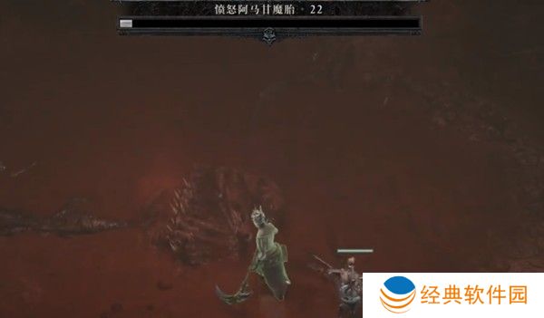 2、来到深处回碰到boss恼怒阿马甘魔胎,我们应该击倒小怪阻拦血条提高。