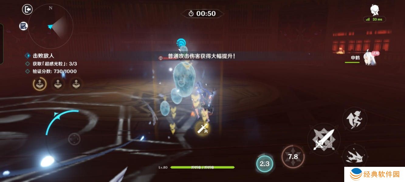 ps:如果50秒未释放「超感技能」,角色伤害会降低哦。