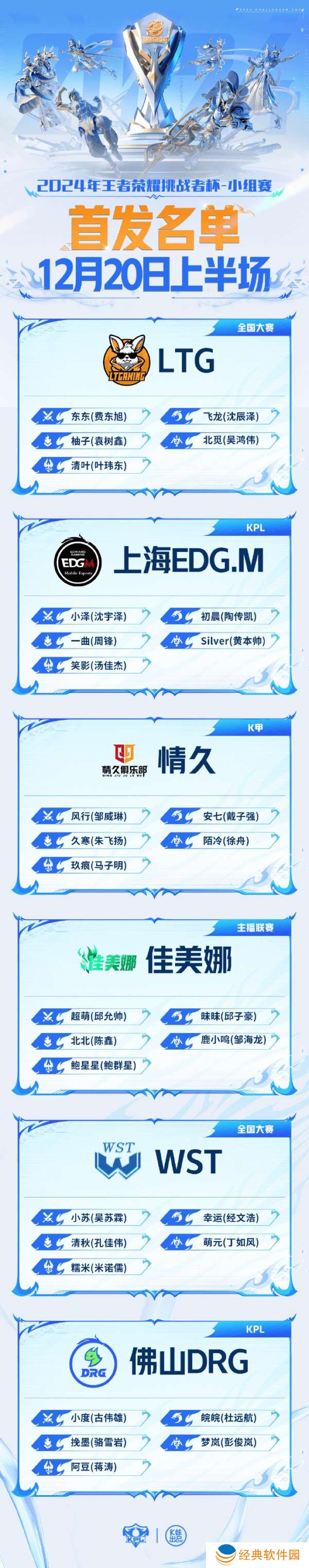 2024年王者荣耀挑战者杯 小组赛W3D2【首发名单】送达 !