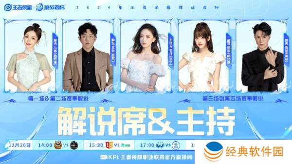 解说席&主持人:解说小鹿 (陆舒媛)、北岛bbb (王东)、灵儿chili (刘宁)、解说琪琪 (杨泽琪)、GK黄色超人oye (黄超)