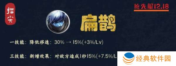 重点在于加速效果,1技能使用后对范围内队友进行加速10%,调整后变成了5%-10%,但新增了一个机制,那就是对自身翻倍。