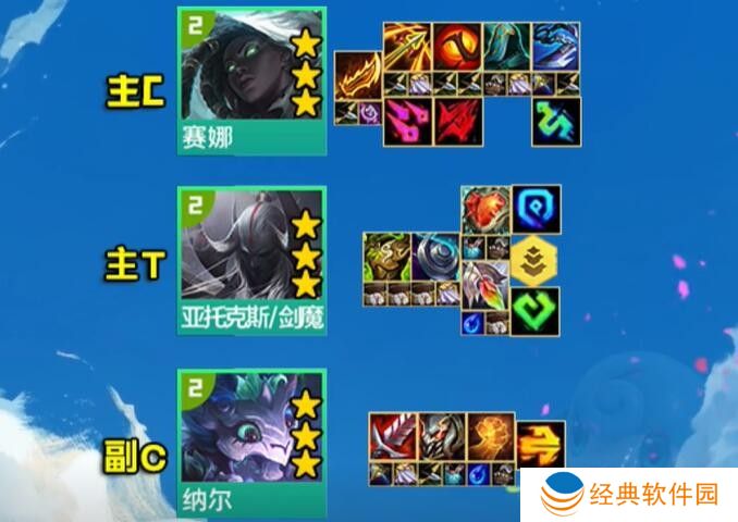 主C赛娜按从左往右优先做羊刀、分裂弓等装备,亚托克斯需要狂徒、薄暮法袍、心之钢增加坦度,纳尔尽量要吸血装备。