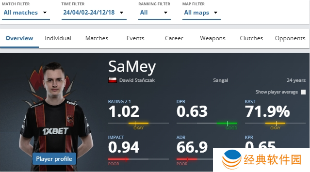 Anonymo阵容加入Sangal,在效力期间的192张地图中平均rating为1.02,但他在线下赛事的表现明显下滑(27张地图平均rating为0.88),尤其是在对阵世界前20的队伍时表现尤为低迷(13张地图平均rating为0.81)。