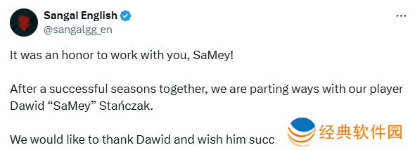 Sangal宣布了SaMey的离队,结束了这位波兰狙击手与队伍长达七个月的合作。