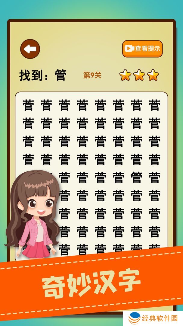 推荐理由:这款游戏考验玩家的观察力和对汉字结构的敏感度,适合各个年龄段的玩家。简单的规则和易于上手的操作使其成为休闲时光的好伴侣。