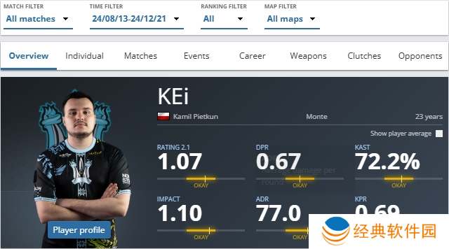 KEi在效力Monte的四个月期间,平均获得了1.07的rating,他与队伍最值得注意的成就是打入了ESL 挑战者 卡托维兹站 2024的半决赛。