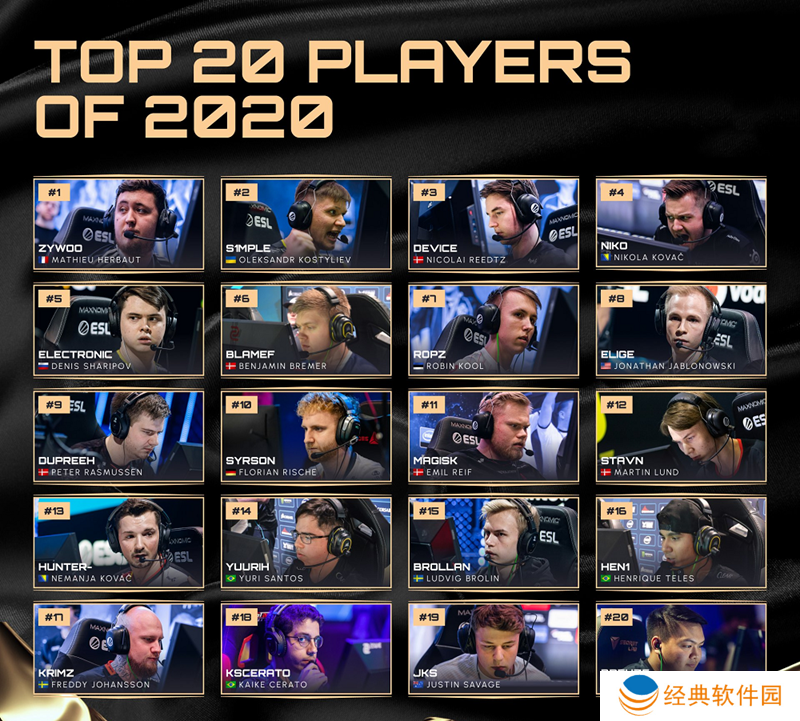 2020步入线上赛时代,年轻的法国巨星ZywOo在这一年蝉联TOP1,成为继coldzera和GeT_RiGhT两名传奇选手之后第三位蝉联年度最佳选手TOP1的选手。“The Chosen One”名副其实!而s1mple和device依旧分别位居TOP2和TOP3。