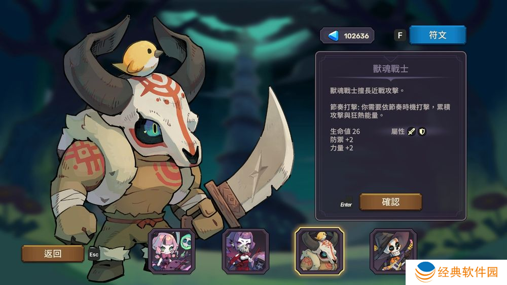 「兽魂战士」是擅长近战攻击的角色,基础力量与防御力血量都较高。