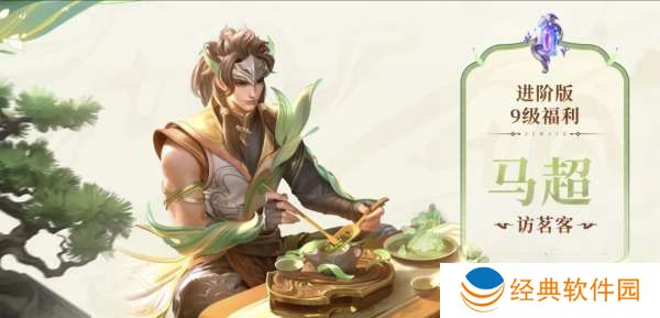 马超-访茗客、品质勇者限定,进阶版战令9级获取,造型设计上马超身穿褐黄色长袍,护手和肩甲做成了绿草的样式。