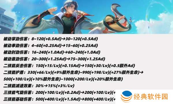 一二三技能上调基础伤害、AD加成改为额外AD加成,一/三技能护盾新增额外生命值加成、