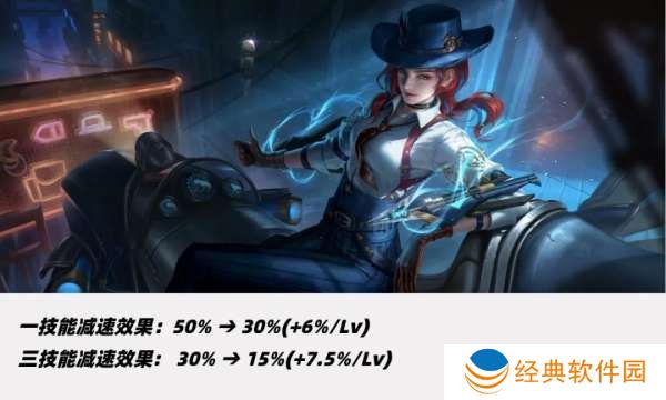 二技能减速从50%调整至15%-30%,二技能前期缩短2秒、满级不变。