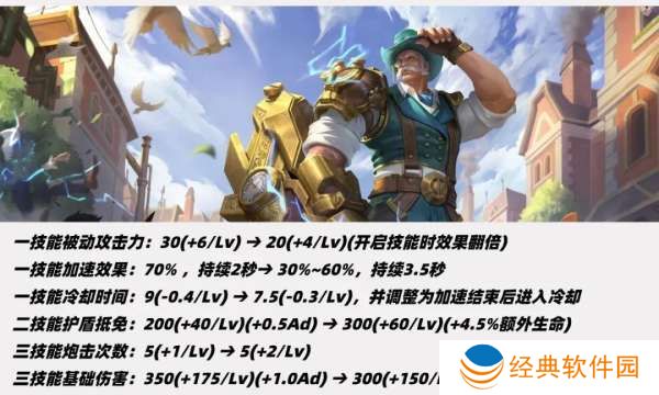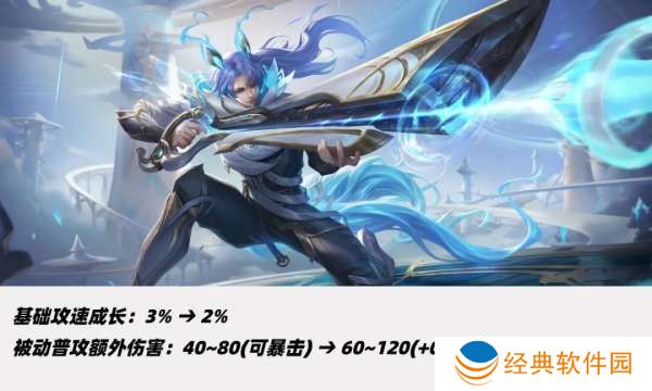 二技能攻速从15%-30%改为12.5%-25%,二技能期间攻速加成翻倍。