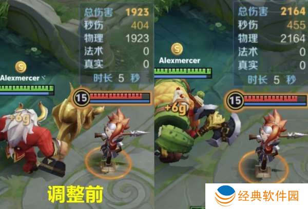 以满级全肉出装进行测试,大招击飞+5秒裂缝持续伤害,调整前1923点伤害,调整后2164点伤害。