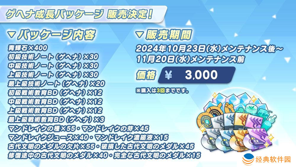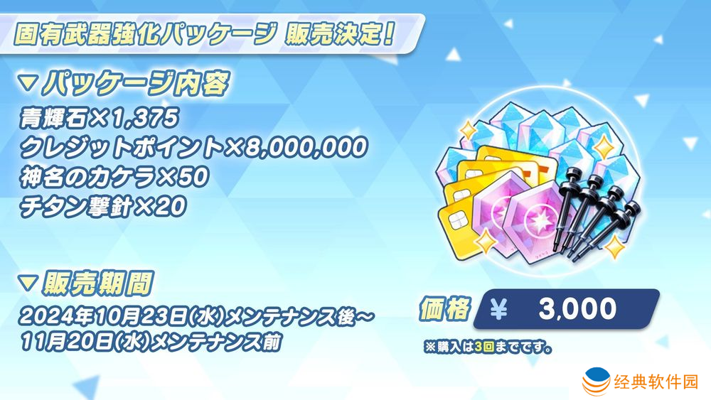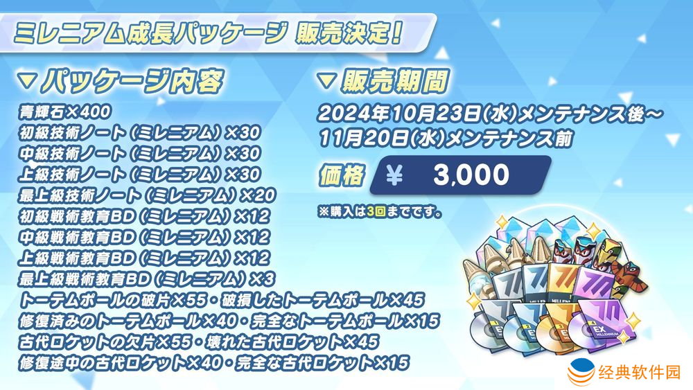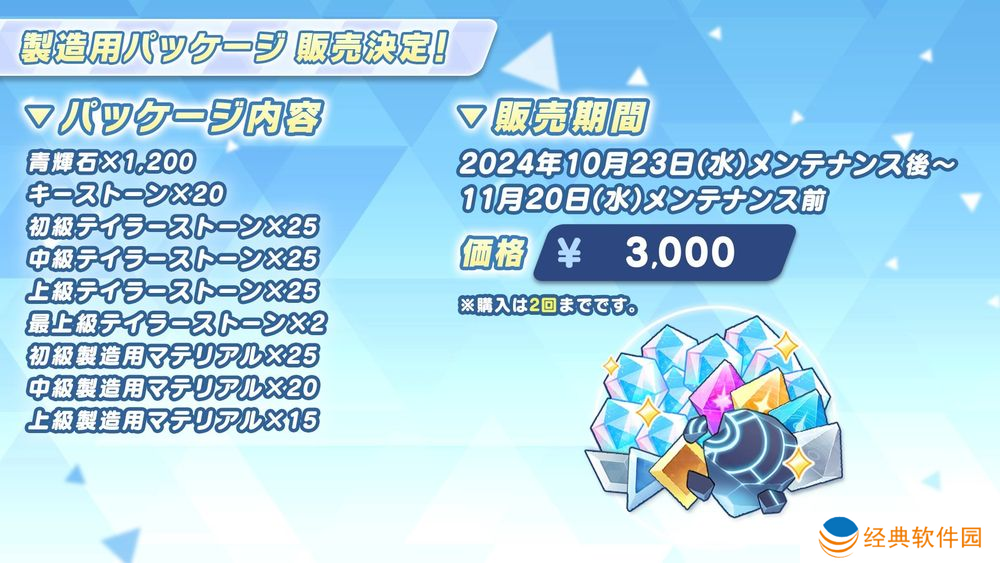 青辉石、技术笔记、装备设计图等素材綑绑销售的各种礼包将于 10 月 23 日维护结束后同时开始贩售。