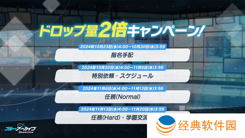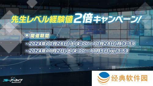 自日本时间 10 月 23 日(三)4:00 起,不同关卡的「掉落量 2 倍活动」以及「老师等级经验值 2 倍活动」将陆续开跑。