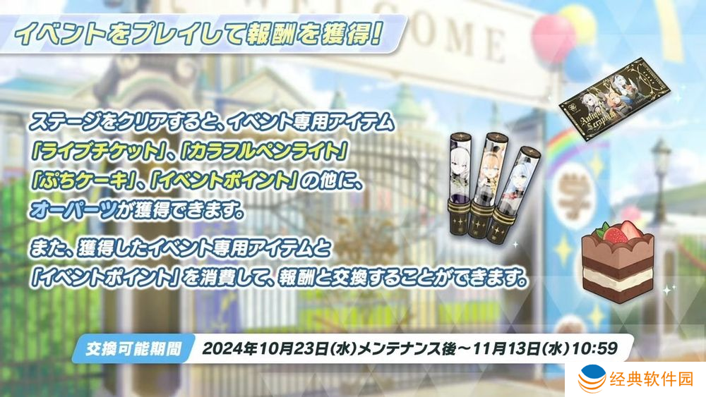 通关活动 Stage 时,除了可获得「演唱会门票」、「七彩手灯」、「小蛋糕」、「活动点数」等活动专用道具外,还能获得欧帕兹。玩家可使用上述道具及点数,至活动商店兑换各种道具。