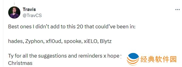 除此之外,他根据评论区的提醒和建议补充了六名选手:hades、Zyphon、xfl0ud、spooke、xiELO以及Blytz。