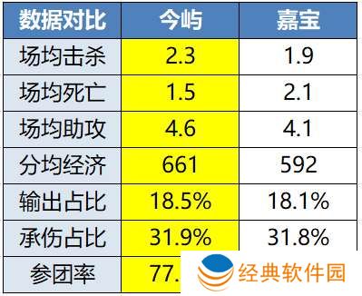 而今屿今晚的对手嘉宝,在小组赛的表现也同样谈不上亮眼,KDA在淘汰赛打野选手里排名倒数第二,参团率也同样是末流。英雄池方面,嘉宝坦野的胜率要明显优于野核,夏侯惇5战3胜,阿古朵2战全胜。至于镜和大司命,一个50%胜率场均1-1.5,一个3战仅1胜。在今晚的BO7里,对嘉宝的英雄池无疑是个巨大的考验。
