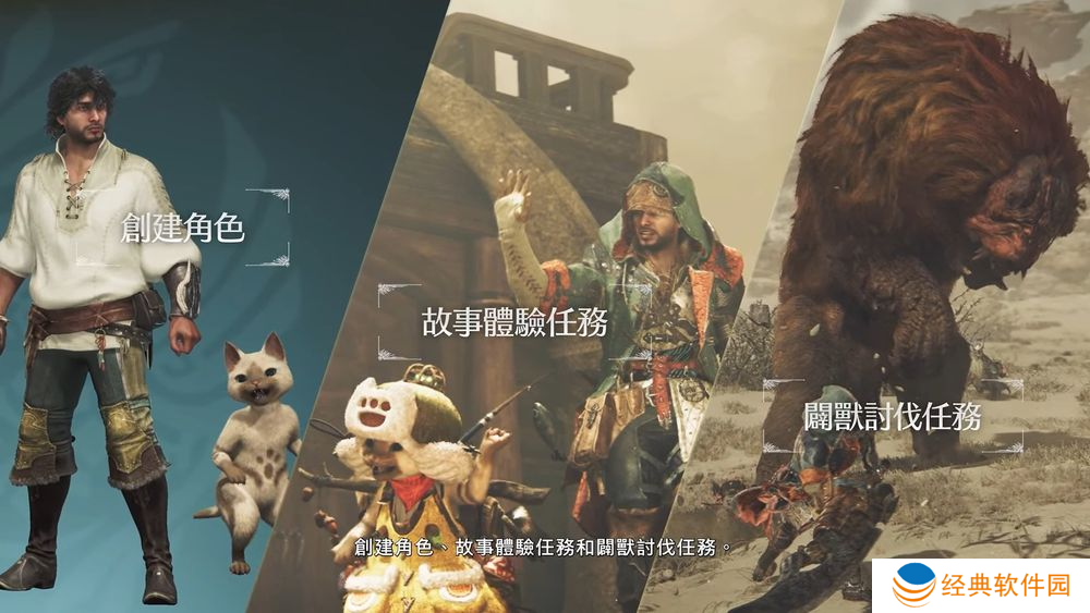 《怪物猎人 荒野》公开测试包含三个部分:「创建角色」、「故事体验任务」和「闢兽讨伐任务」。