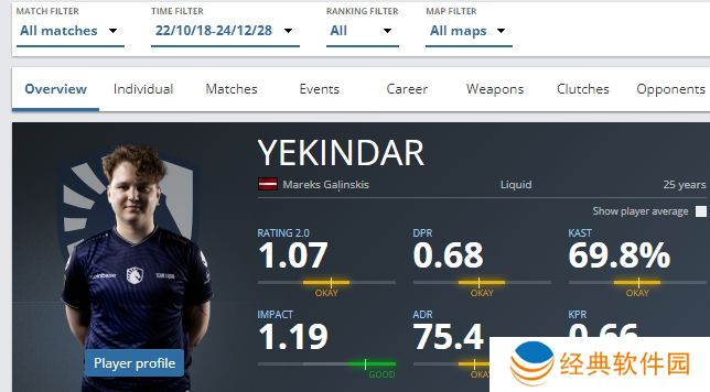 YEKINDAR自2022年10月转会至Liquid到今日被下放,为Liquid效力2年2个月。没有获得任何大赛的冠军,最好的成绩是EPL S16、2022BLAST Premier世界总决赛的亚军。在Liquid他能贡献平均1.07的rating,总击杀数5286,总阵亡数5446,K/D差为-160。在总计336张地图中他的每回合击杀(Kills / round)为0.66,1+rating的占比是57.4%。