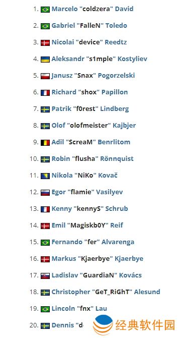 以下为2016年HLTV 年度最佳选手Top 20名单: