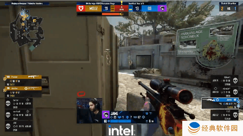 通常在这种情况下,Jame会选择保狙而不是冒险,但这次他决定挑战一下自己,并试图赢得这个回合。结果他成功了,而且非常精彩:在最后一名敌人面前,他通过一个漂亮的闪电般快速的180度甩狙完成了翻盘。
